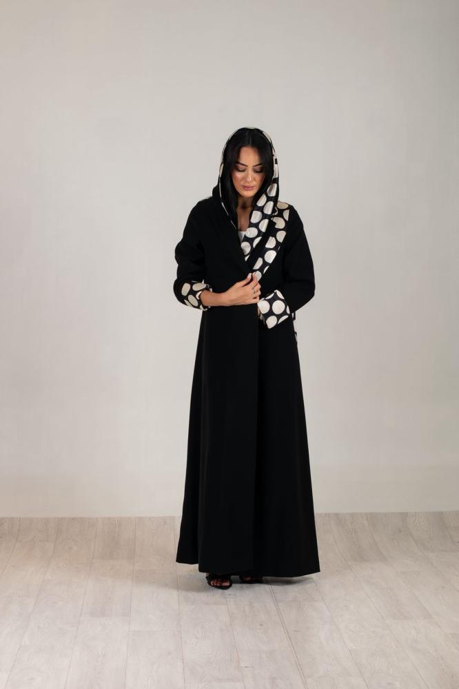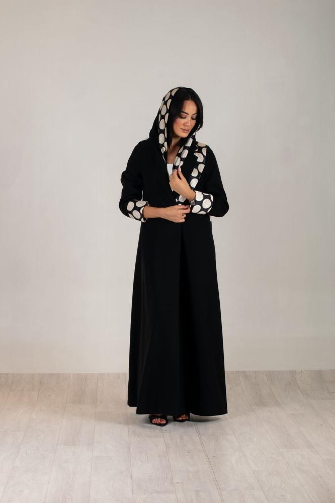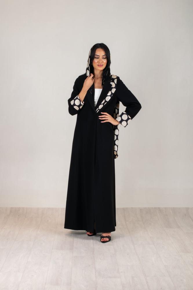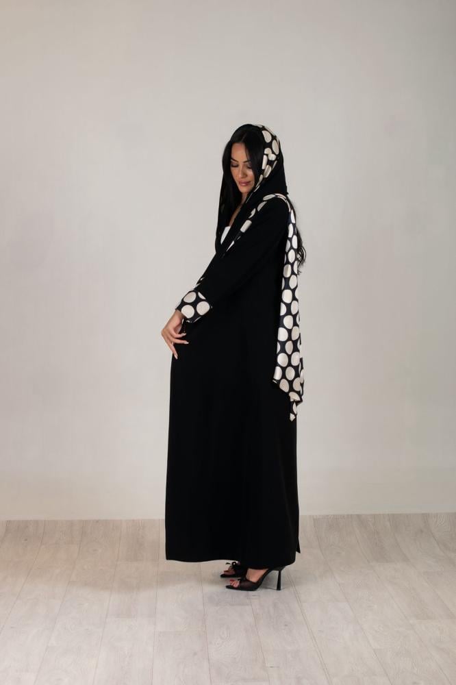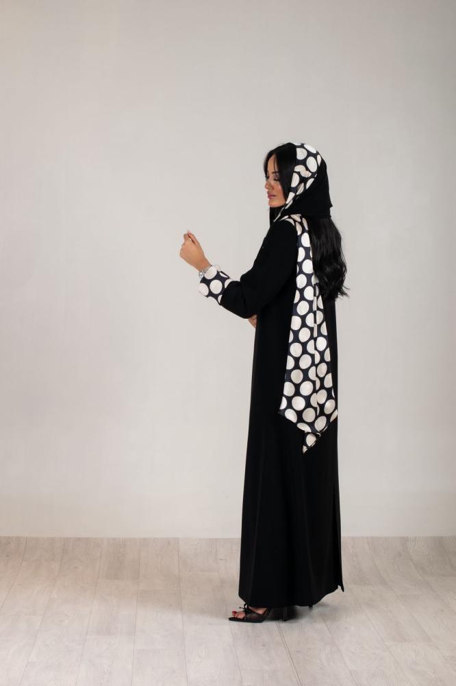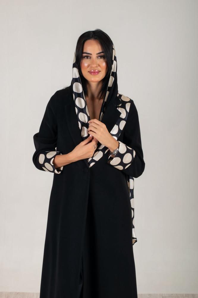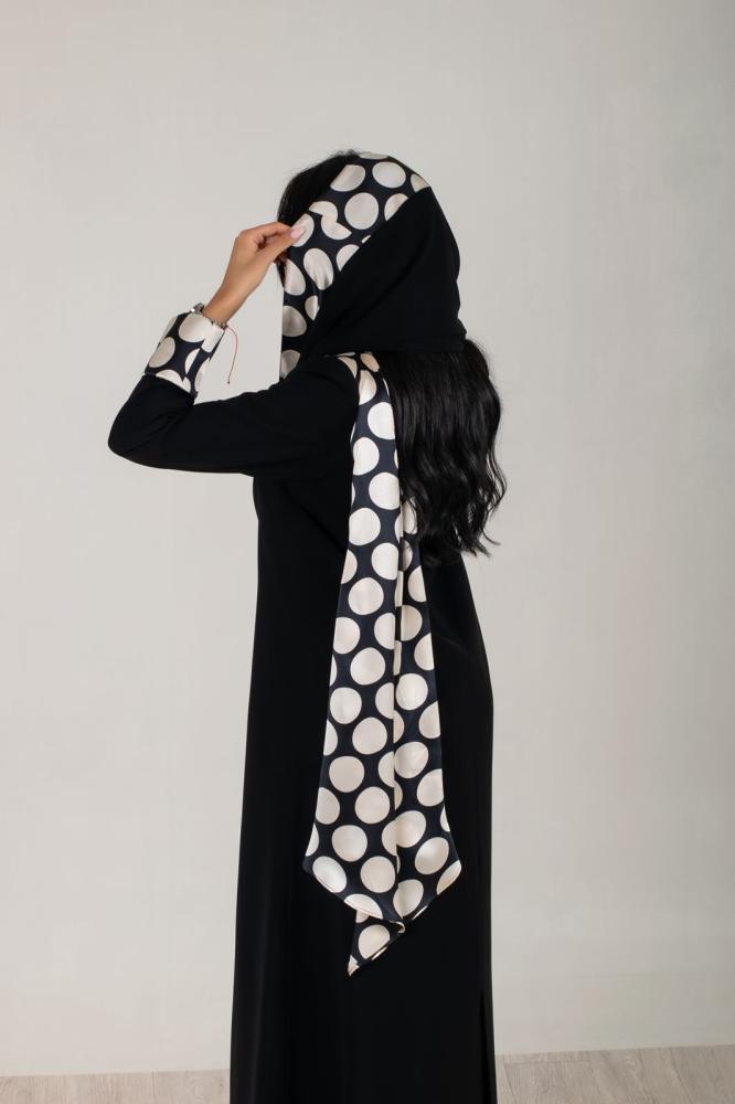عبايه بليزر قماش كريب ملكي وسكارف من الحرير مثبت في العبايه