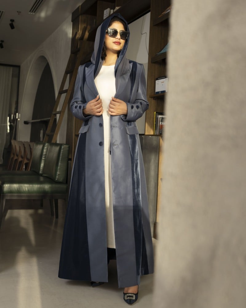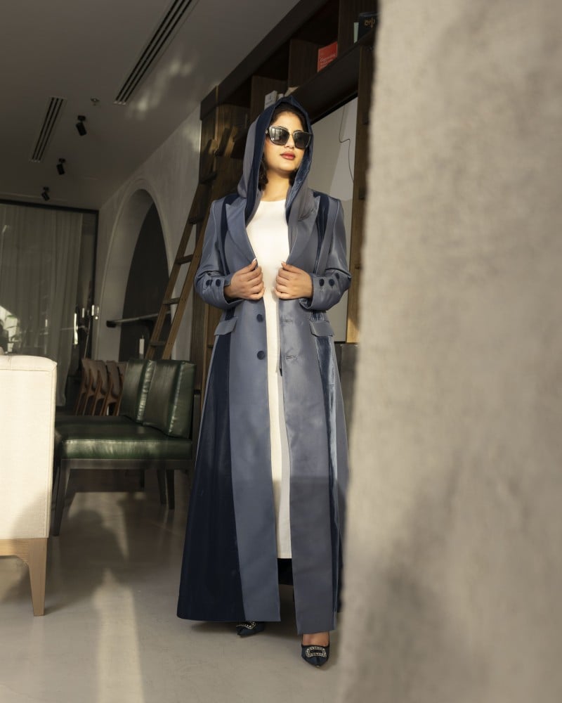 عبايه قصه بليزر من قماش تفتا وتدخيلات ناعمه من المخمل