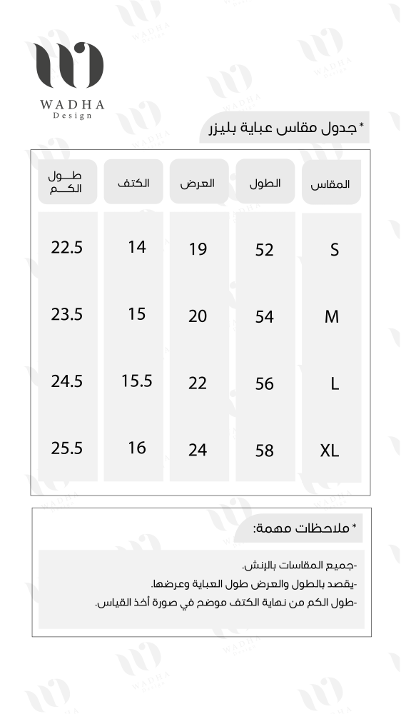 تنويه * اخذ المقاس بطريقه خاطئة مسؤوليتك